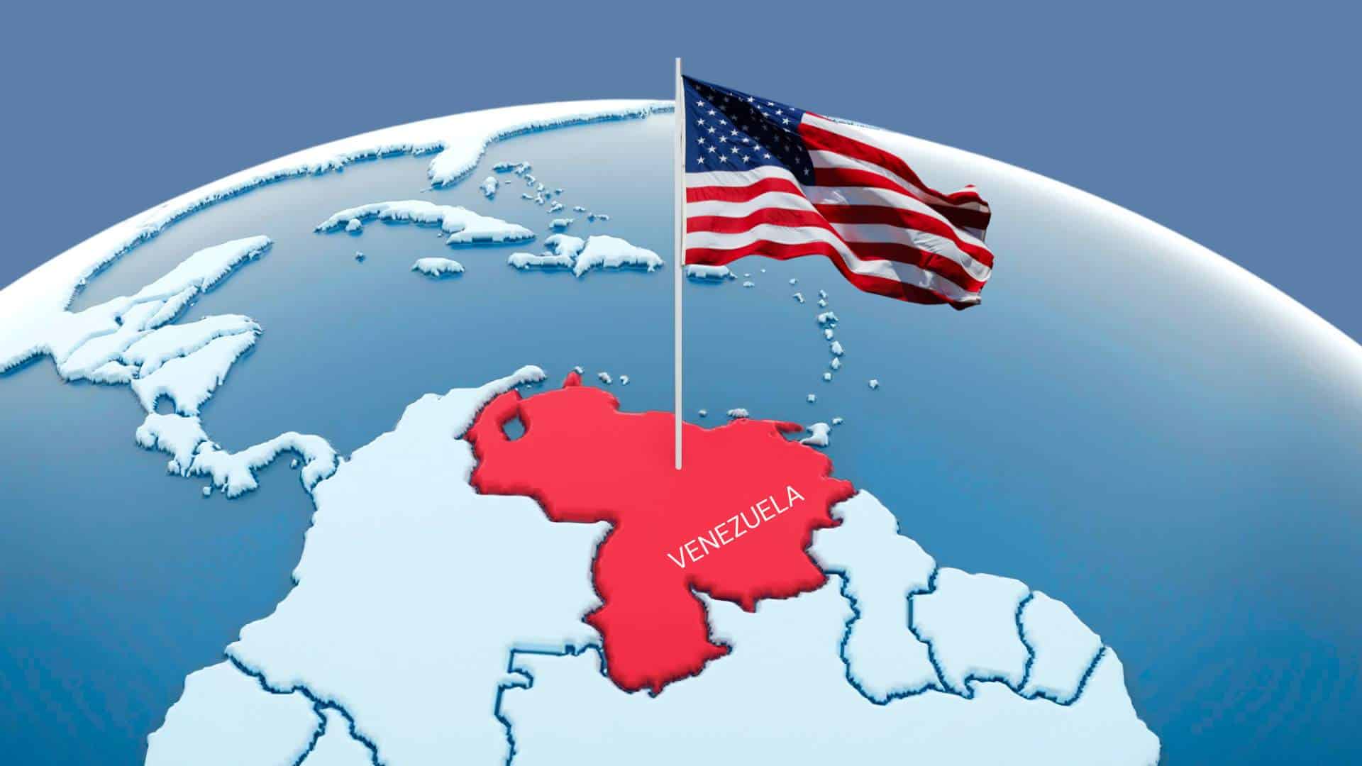 A map shows the U.S. flag planted on Venezuela. (Illustration by News Decoder)
