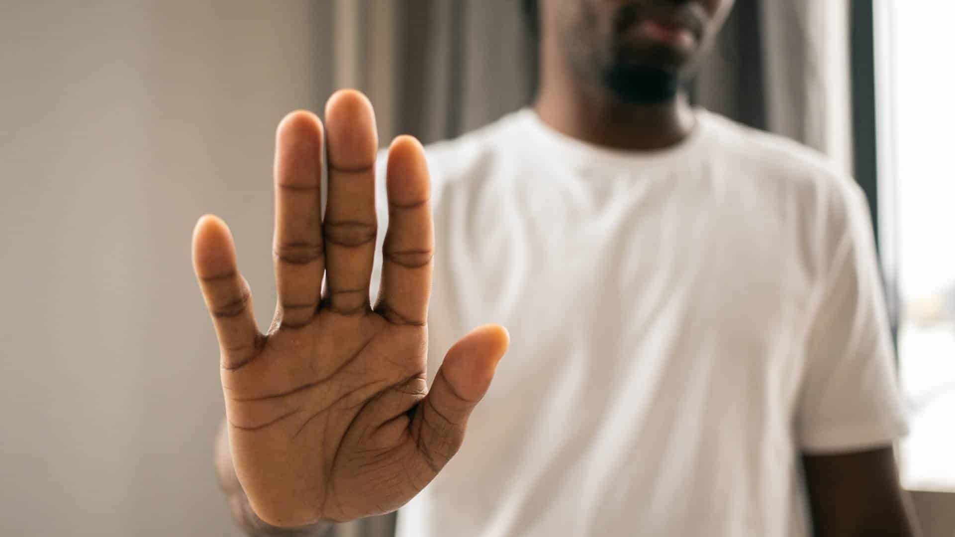 A young man holds up his hand to say no. (Photo by Monstera Production/Pexels)