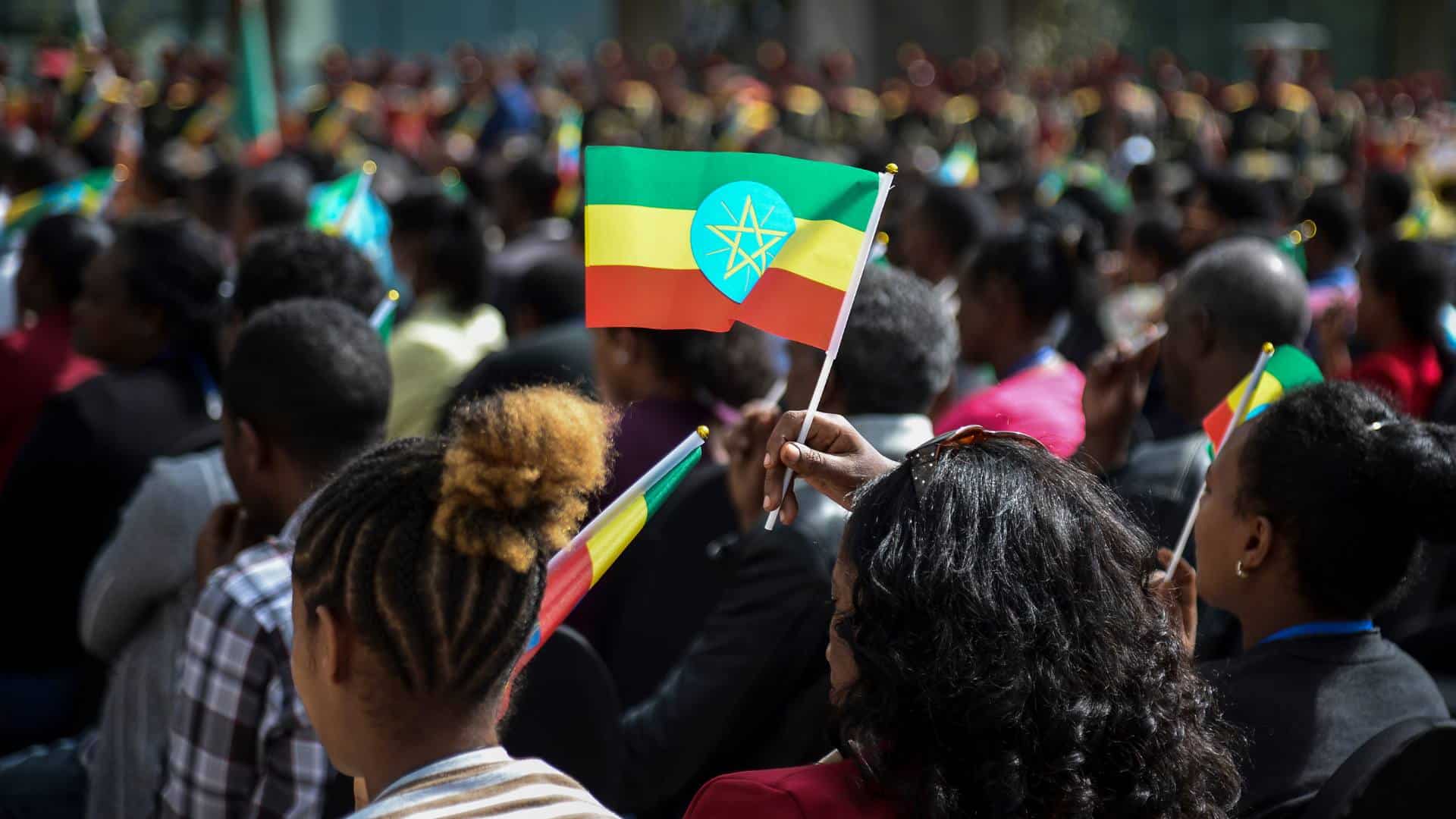 A woman holds an Ethiopian flag at a ceremony to remember soldiers who died. Addis Ababa, Ethiopia 3 November 2022. (AP Photo)